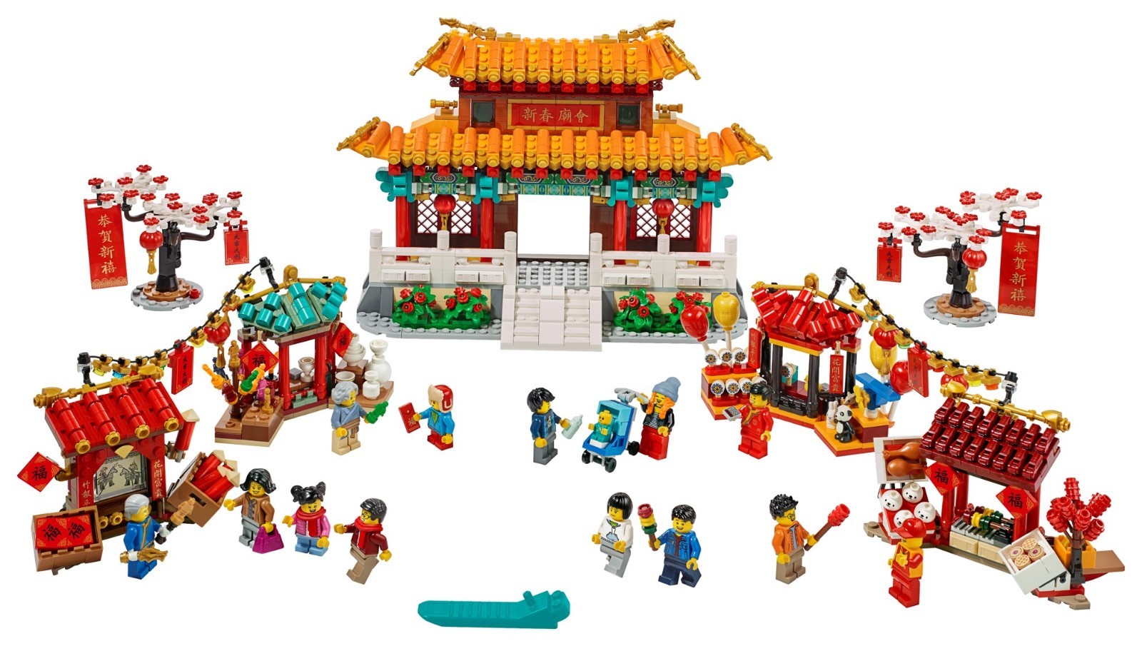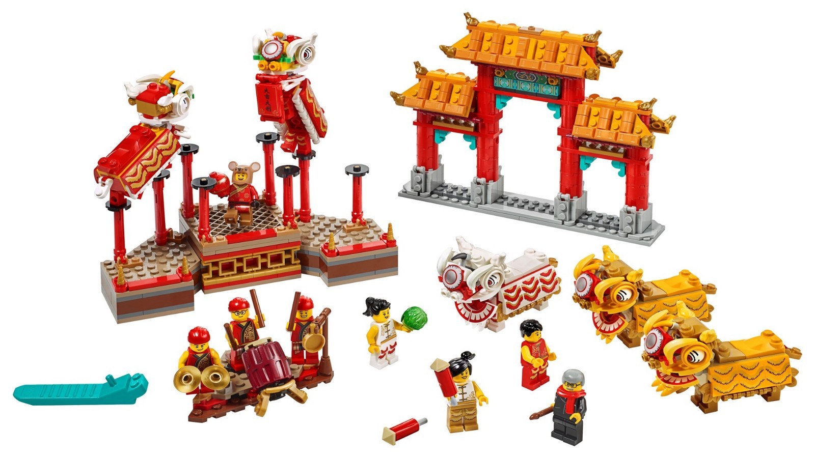 继2019春节推出乐高舞龙和年夜饭,端午节推出乐高赛龙舟之后,2020年乐高集团再次以农历新年为主题,全新推出两款中国传统节日套装——80104舞狮和80105新春庙会,生动地再现了中国春节的热闹场景,体现了阖家团聚与欢庆的浓浓年味。两款套装已于中国与亚太市场上市发售,并从2020年1月10日起,在亚太地区以外的乐高零售渠道上市销售。